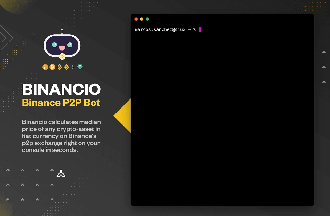 Binancio calculates median price of any crypto-asset in fiat currency on Binance's p2p exchange right on your console.